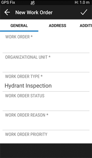 1. From the Work Order list, tap and then tap . The New Work Order screen appears: