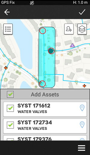 This feature can be used in leak repair workflows to quickly isolate a water main, and identify and locate the valves that need to be shut off.