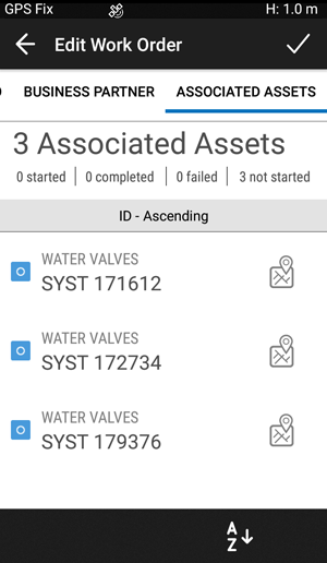 Tap Save  . .The assets are added to the work order and appear in the ASSOCIATED ASSETS tab: