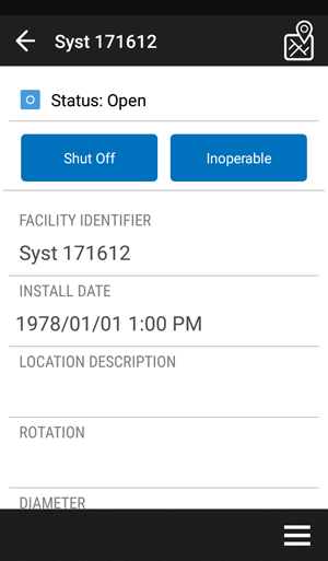 Tap on each of the water valves to see the details:   For information about selecting assets, see Step 6, select asset to work on.