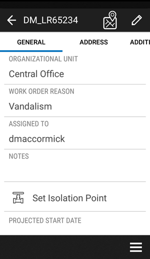 On the GENERAL tab, tap Set Isolation Point:   The map opens and shows you the location of the reported leak.