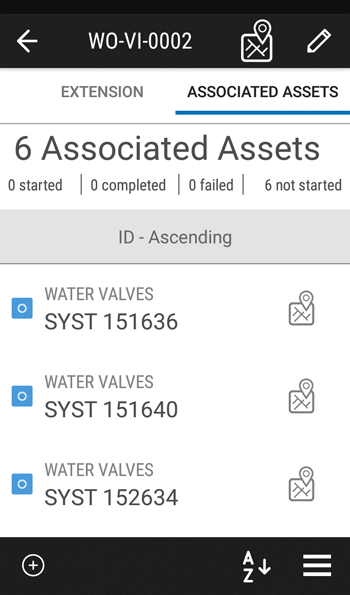 Tip: If there are several associated assets, you can sort the assets by asset ID, asset type, status, and distance from your current location.