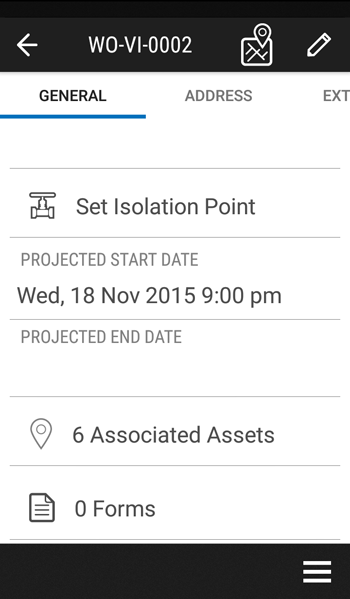 This step is only required if there are assets associated with the work order. Otherwise, the work order can be progressed to the next step. If there are any forms that need to be collected on the work order, then you must complete the required information.