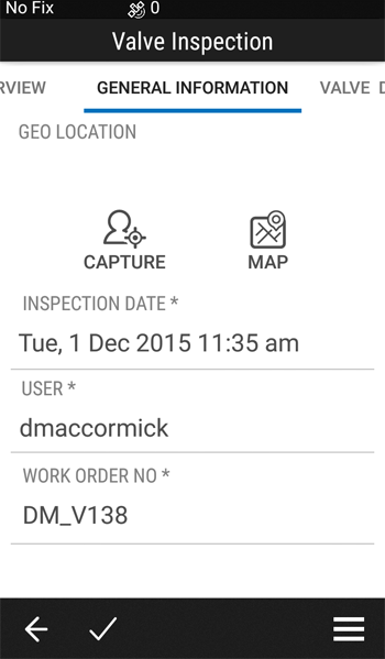 Work through the form to capture the required data for the asset. Once complete, tap  to save the form.