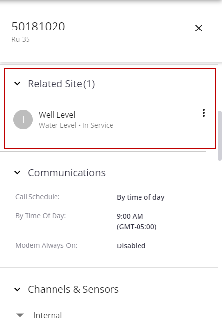 - Select an RTU from the list, or open the RTU details from a monitoring site on the map.