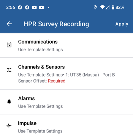 NOTE: If you have an ultrasonic Massa sensor, the Sensor Offset field must be configured before you can click Apply.