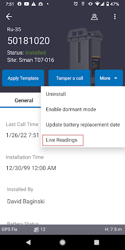 - Tap Live Readings. This option may appear in the More drop-down list.