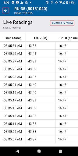 - Tap the back arrow to exit Live Readings.