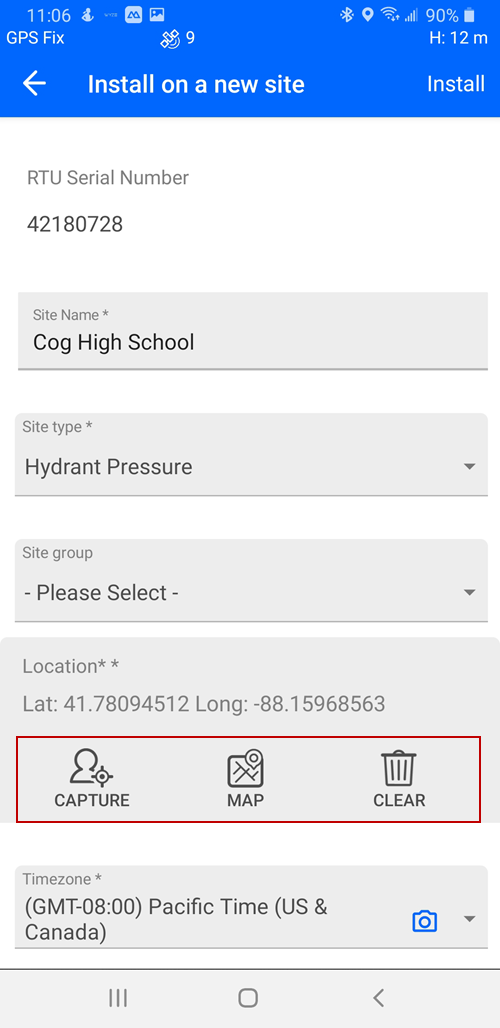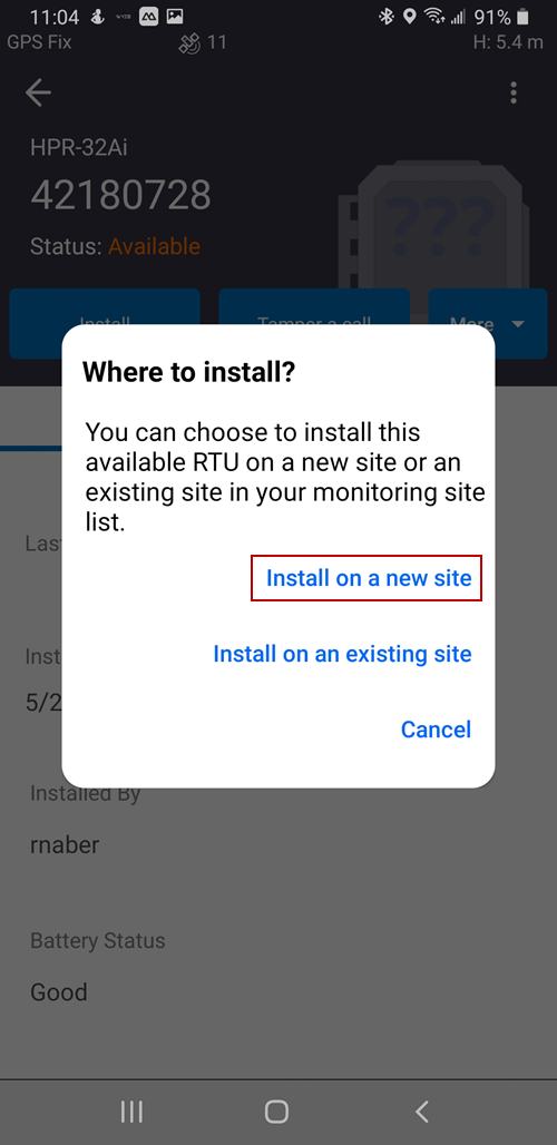 Install an RTU on a New Site Using the Mobile App
