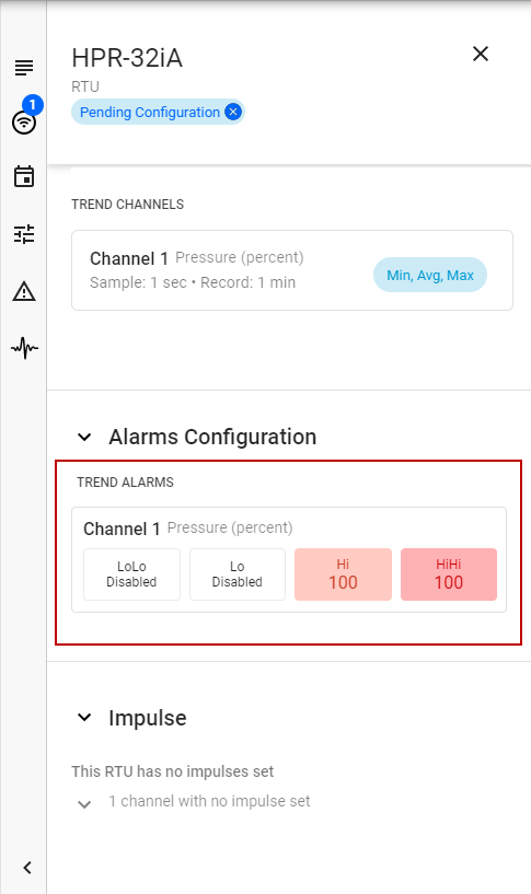 - HiHi: the alarm is triggered when the reading is equal to or higher than the threshold.