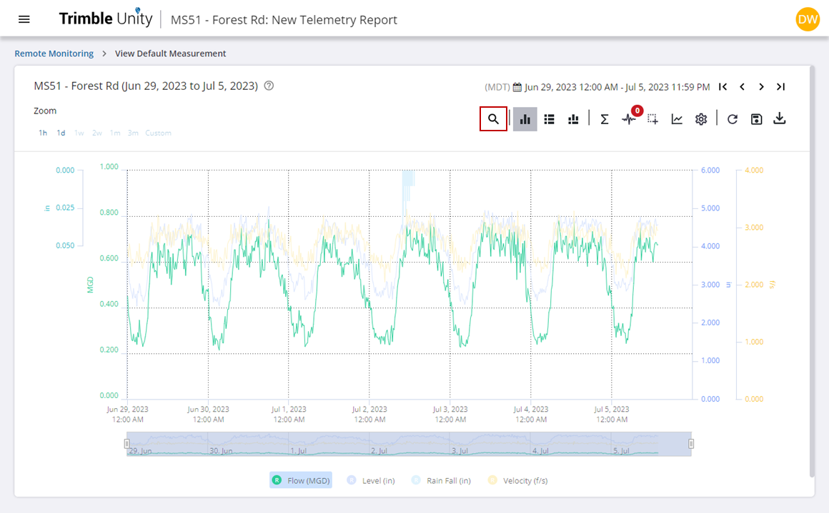- Click Search. Any data that matches the search criteria is highlighted on the graph.