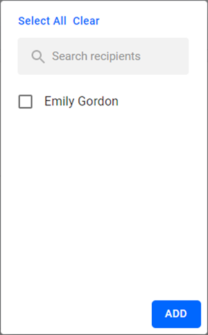 - To add an existing recipient, select one or multiple recipients from the list and click Add.