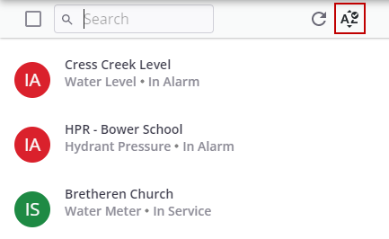 - Click the Sort icon in the top-right corner of the monitoring site panel.