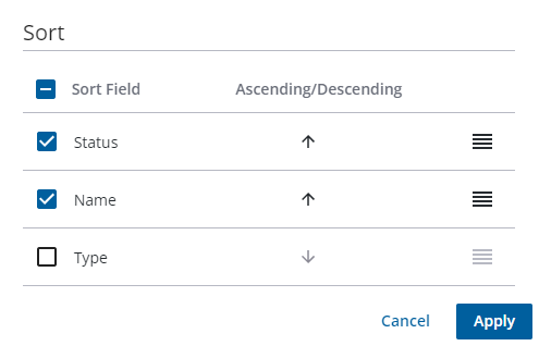 - Change the field sort order by clicking and dragging the horizontal lines in the order in which you would the fields sorted.