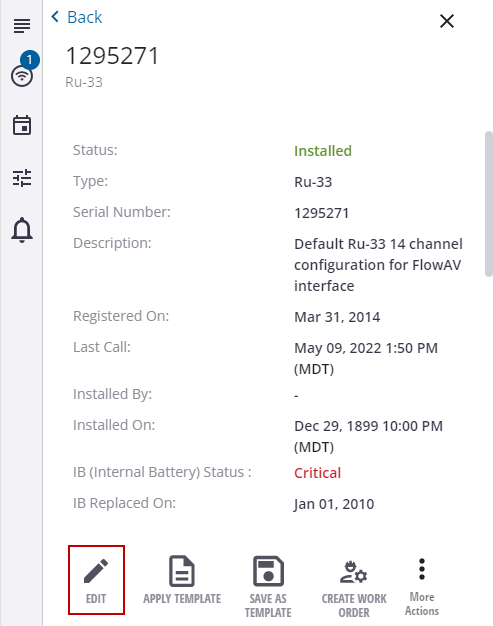 - Plan a battery replacement and update the replacement date using a battery replacement work order. See Create a Battery Replacement Work Order for more information.