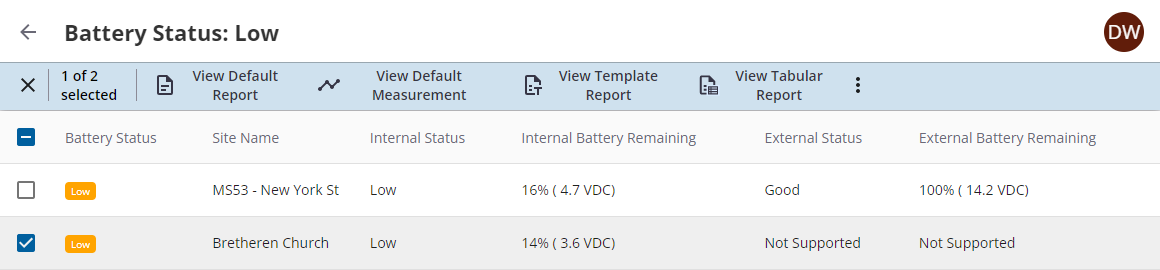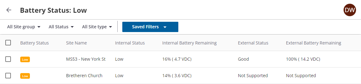 - Click a segment on the Battery Status widget to view the devices for that category.