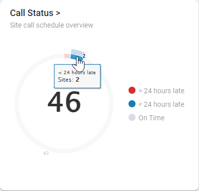 The Call Status widget shows the total number of devices that are calling in, as well as how many are calling in on schedule, less than 24 hours late, or more than 24 hours late.