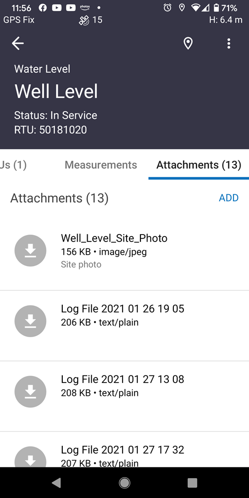 NOTE: Mobile does not support folders, therefore, all attachments are shown in a list. Any new attachments including site photos that are added through the mobile app will be uploaded to the default folder of the site during the next sync. See About the Monitoring Site Details for more information.