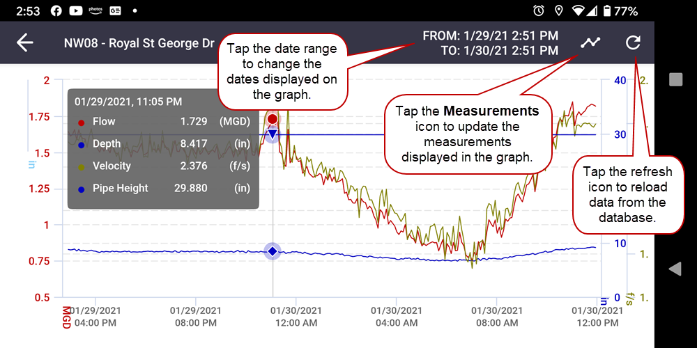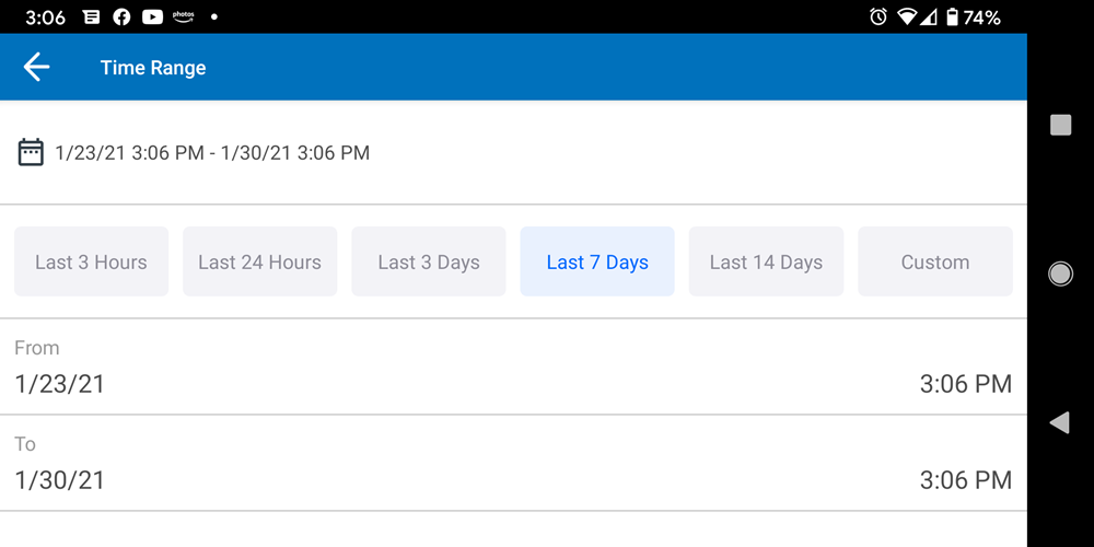 - Tap the date range on the graph to update the dates, or the From and To fields to enter a custom date range.