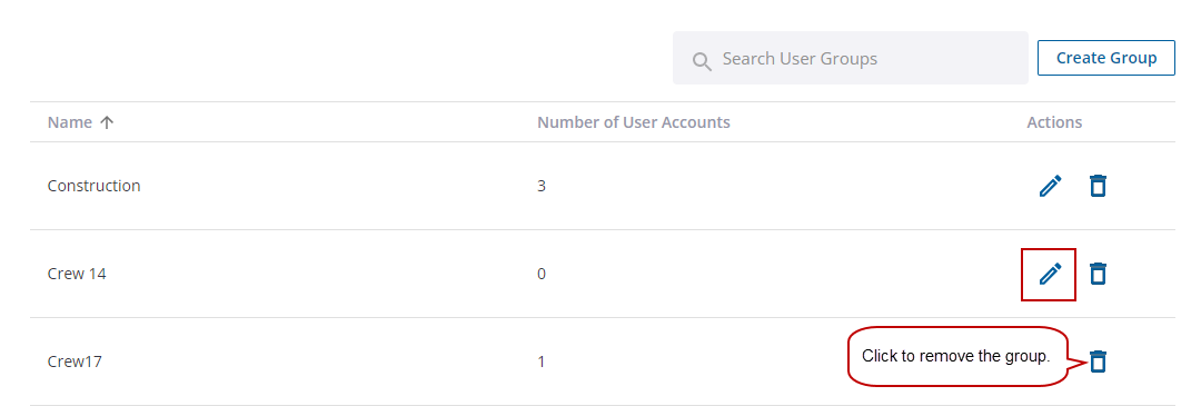 Any existing groups appear in the list. Names of groups can be modified and existing groups can be removed. New groups can also be created.