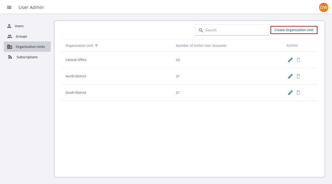 Once organization units are configured, you can assign them to users. See Manage User Accounts for more information.