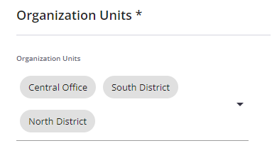 - In the Organization Units section, select the locations for this user. There are three predefined locations and we recommend that you select all of them to allow all users to see each other's work. Additional units can be created and added to a user. See Configure Organization Units for more information.