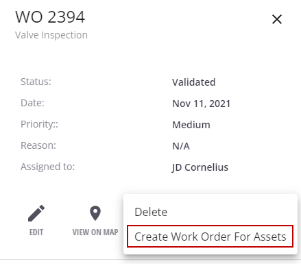NOTE: Any existing assets that were associated to the original work order are also copied to the new work order.