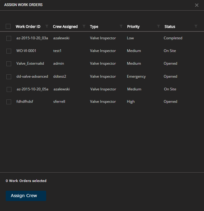 - Select the crew and click SAVE. The crew will be assigned to the work orders.