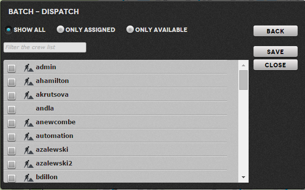 - You can filter by text matching to the crew name. This will start to filter the list as soon as you start typing.