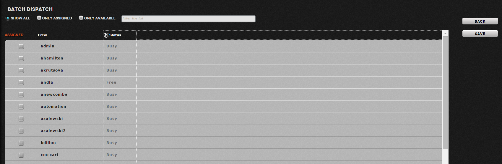 - You can filter by text matching to the crew name. This will start to filter the list as soon as you start typing.